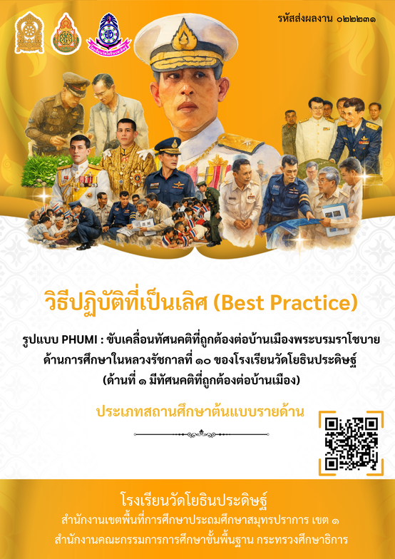 วิธีปฏิบัติที่เป็นเลิศ (Best Practice) รูปแบบ PHUMI : ขับเคลื่อนที่ถูกต้องต่อบ้านเมืองตามพระบรมราโชบายด้านการศึกษา ในรัชกาลที่ 10 ของโรงเรียนวัดโยธินประดิษฐ์