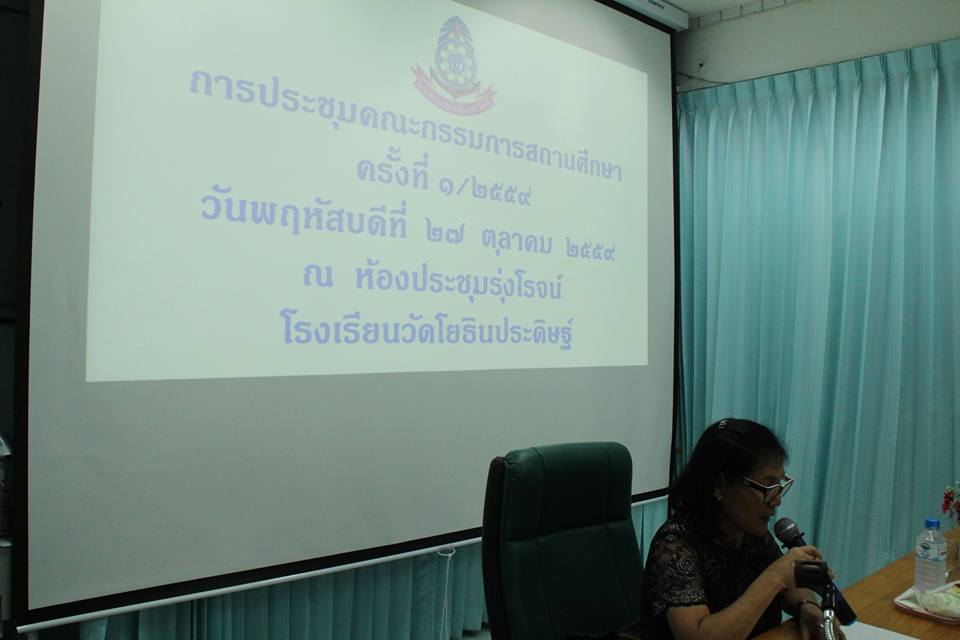 ๒๗ ตุลาคม ๒๕๕๙ ประชุมคณะกรรมการสถานศึกษาโรงเรียนวัดโยธินประดิษฐ์ ครั้งที่ 1 ในวาระการปฏิบัติหน้าที่ของผู้อำนวยการ จิระพงศ์ ศุภศรี สรุปผลดำเนินงานในภาคเรียนที่ผ่านมา และกำหนดเป้าหมาย ทิศทางการทำงานการบริหารแต่ล่ะฝ่ายให้พร้อมเป็นโรงเรียนประชารัฐ ภายการนำของประธานคณะกรรรมการสถานศึกษา คุณจุฑาภา เม่นมิ่ง รองนายกเทศมนตรีเมืองปู่เจ้าสมิงพราย
