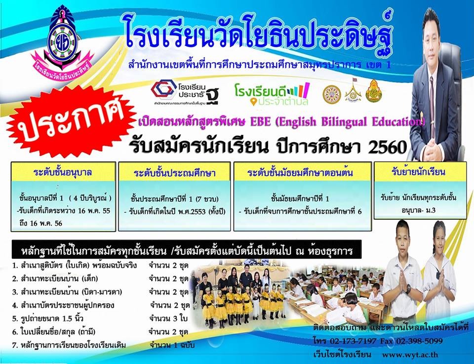 ประกาศรับสมัครนักเรียน ปีการศึกษา 2560 ตั้งแต่บัดนี้เป็นต้นไป สนใจติดต่อสอบถาม 02-1737197
