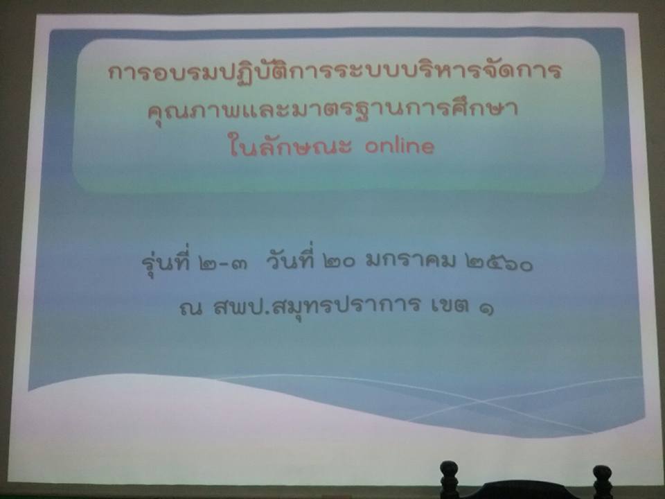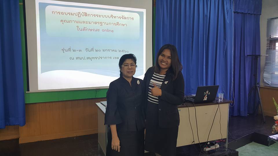 วันที่ 20 มกราคม 2560 รองผู้อำนวยการ วิจิตรา กิตติราช เข้าอบรมและร่วมเป็นวิทยากรในการอบรมเชิงปฏิบัติการระบบบริหารจัดการคุณภาพและมาตรฐานการศึกษาในลักษณะ oline รุ่นที่ 2-3 ณ สำนักงานเขตพื้นที่การศึกษาประถมศึกษาสมุทรปราการ เขต 1