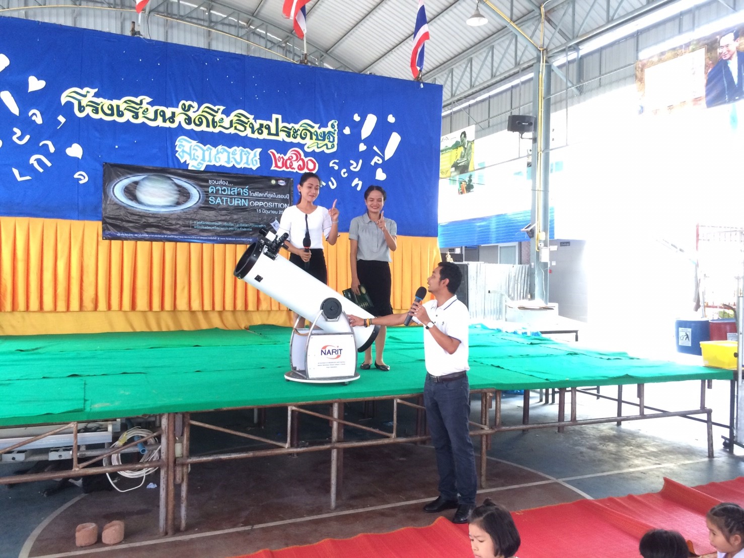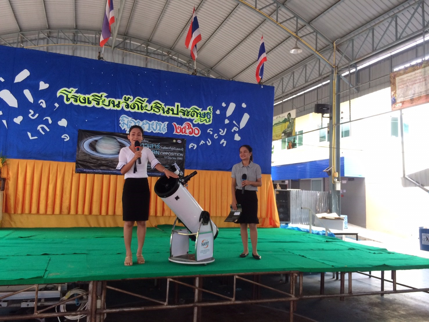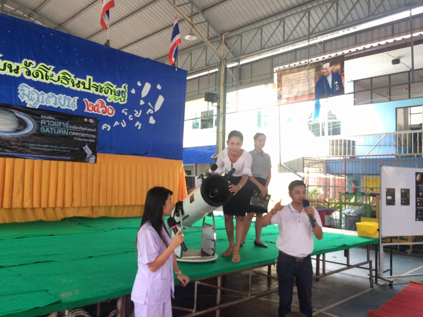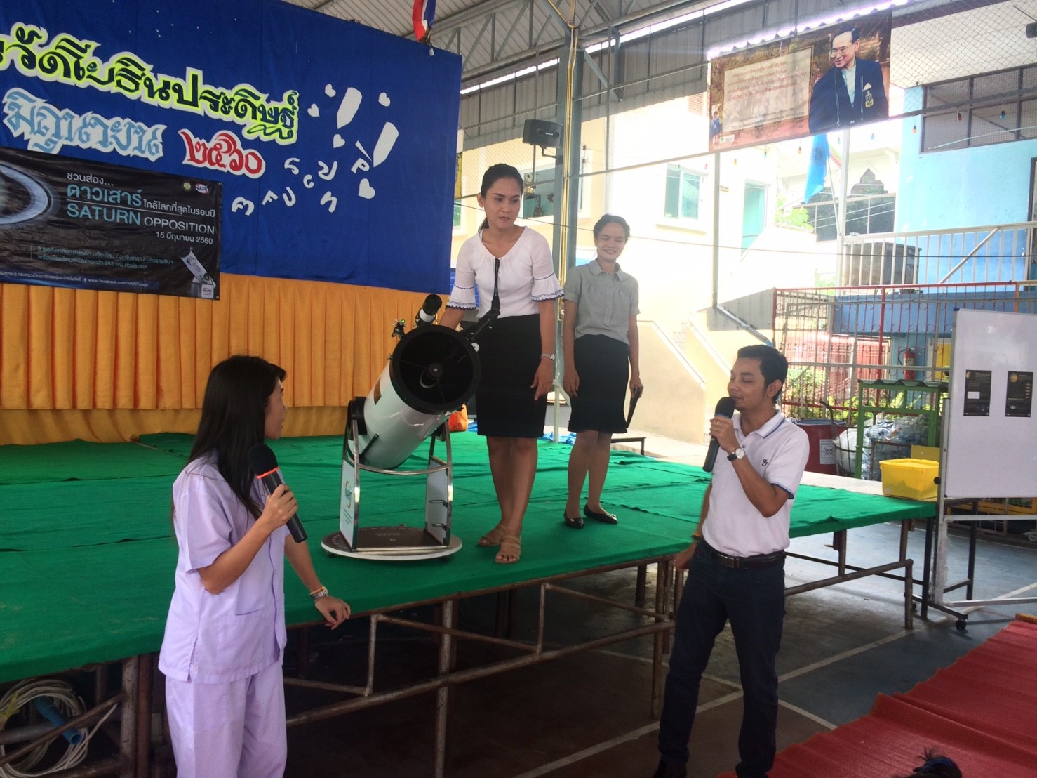 วันที่ ๑๕ มิถุนายน ๒๕๖๐ คุณครูเจริญ มะโนเพชร หัวหน้ากลุ่มสาระการเรียนรู้ วิทยาศาสตร์จัดกิจกรรมการใช้กล้องดาราศาสตร์ (เปิดฟ้าส่องโลก เพื่อการเรียนรู้) โดย ผอ.จิระพงศ์ ศุภศรี เป็นประธานกล่าวเปิดการจัดกิจกรรม