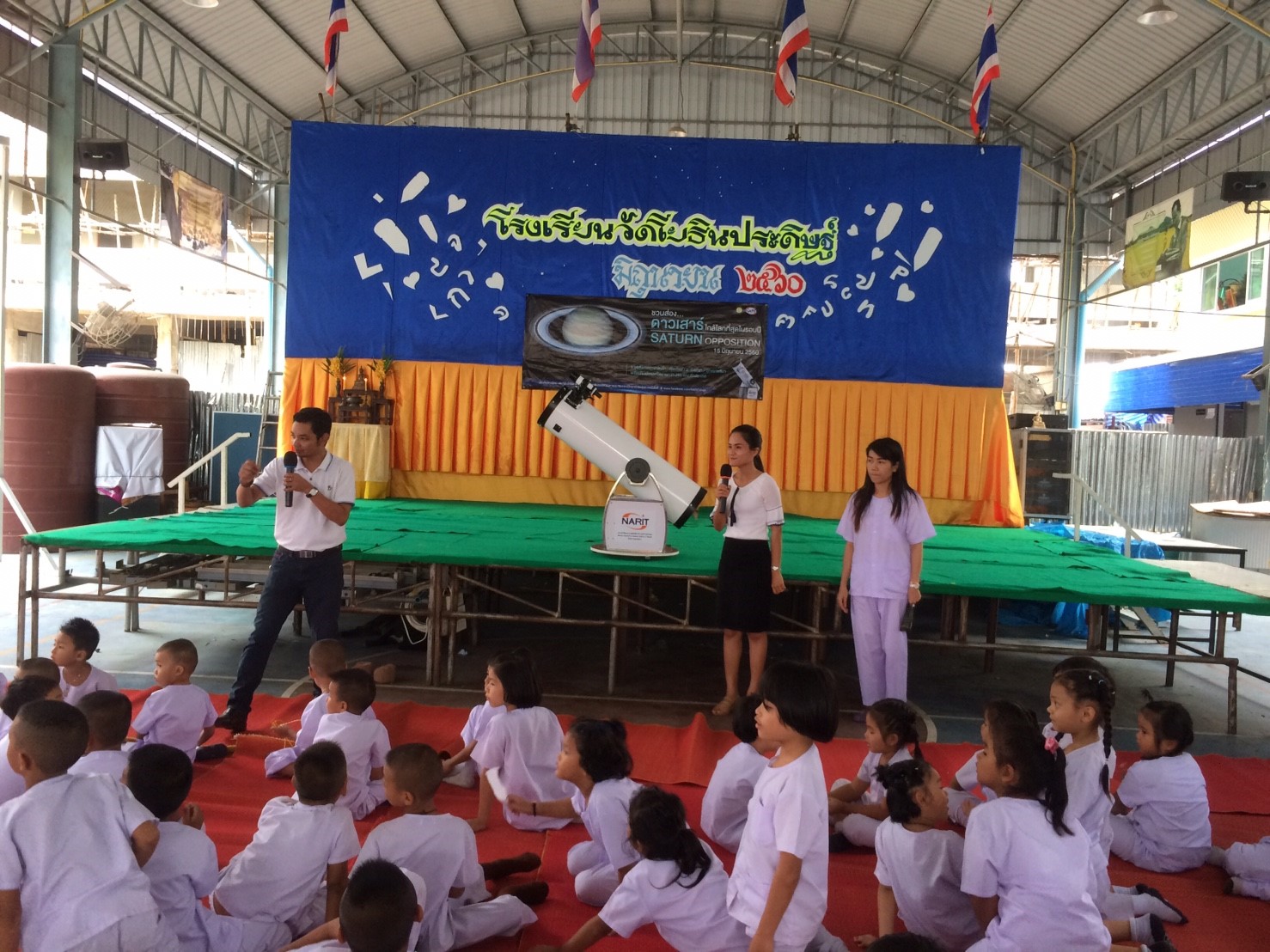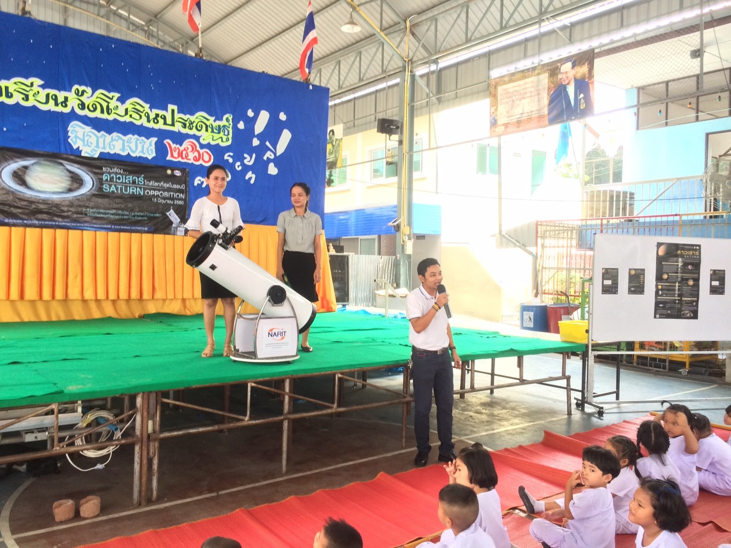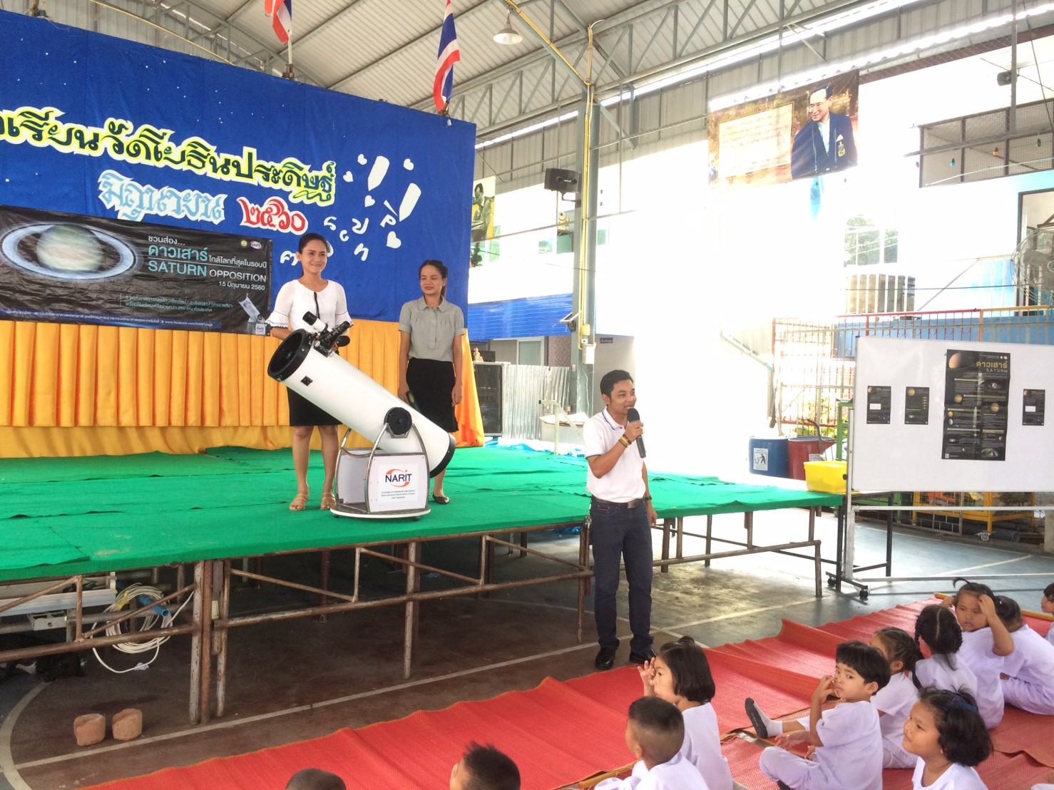 วันที่ ๑๕ มิถุนายน ๒๕๖๐ คุณครูเจริญ มะโนเพชร หัวหน้ากลุ่มสาระการเรียนรู้ วิทยาศาสตร์จัดกิจกรรมการใช้กล้องดาราศาสตร์ (เปิดฟ้าส่องโลก เพื่อการเรียนรู้) โดย ผอ.จิระพงศ์ ศุภศรี เป็นประธานกล่าวเปิดการจัดกิจกรรม