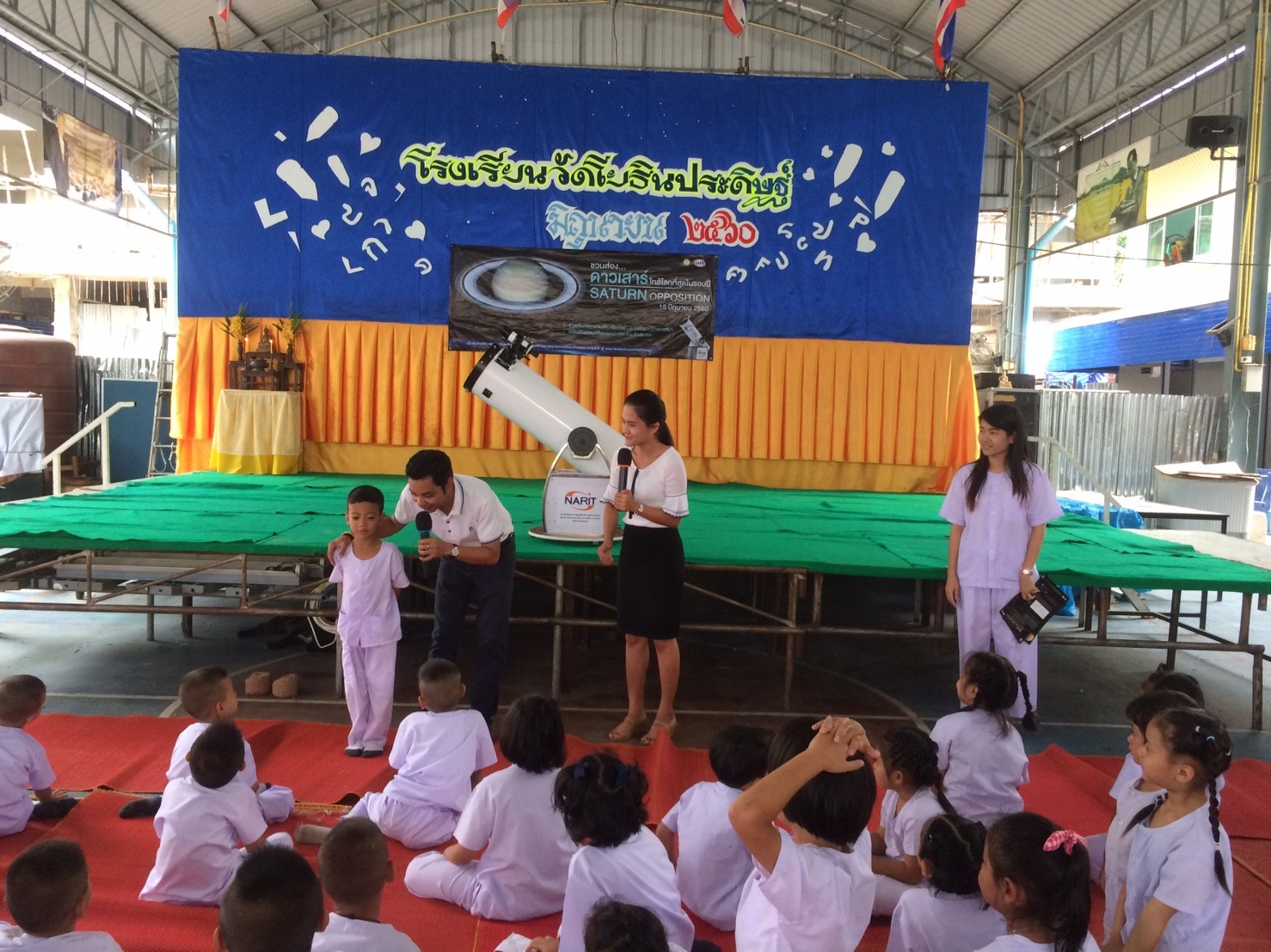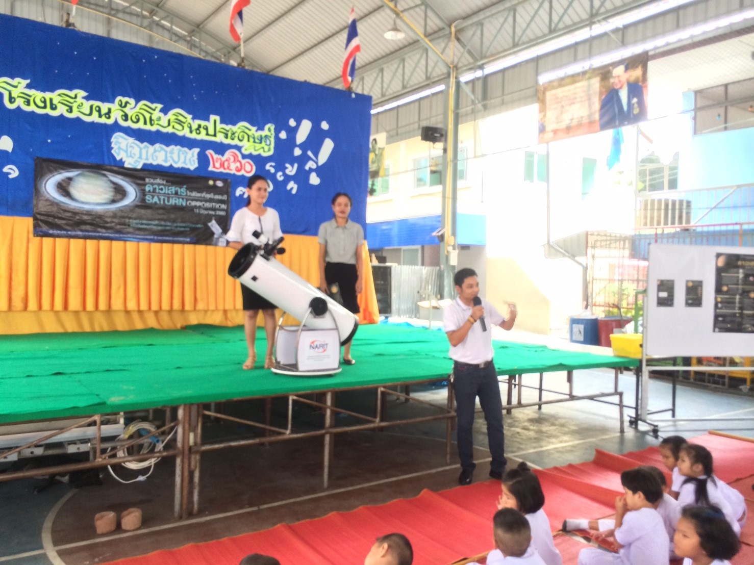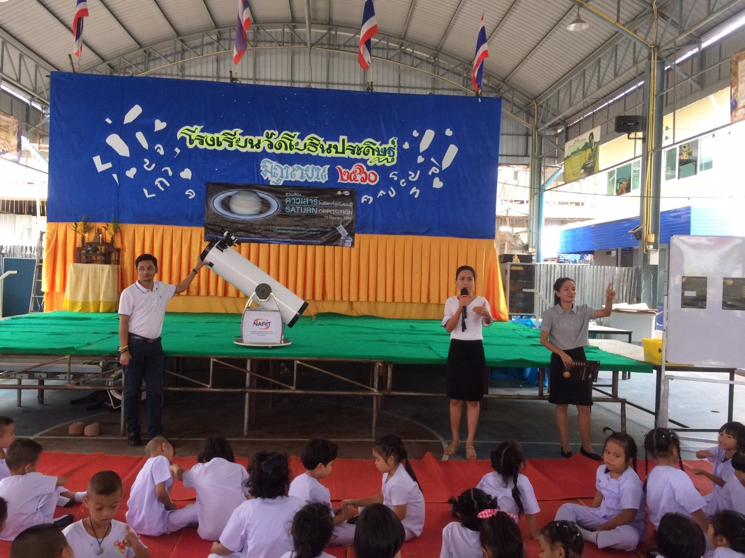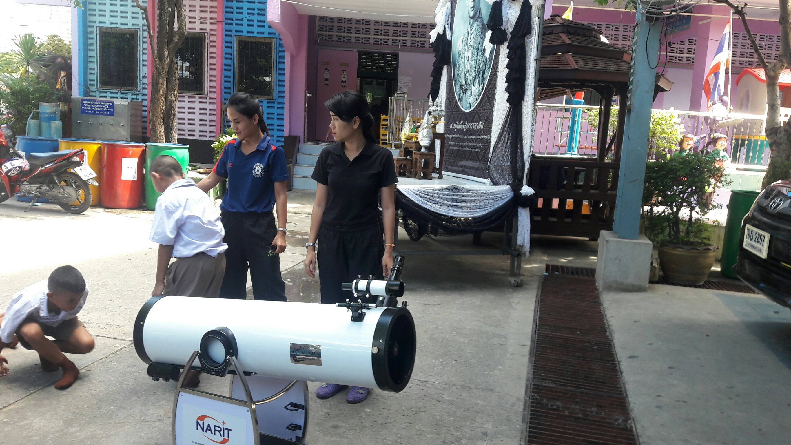 วันที่ ๑๕ มิถุนายน ๒๕๖๐ คุณครูเจริญ มะโนเพชร หัวหน้ากลุ่มสาระการเรียนรู้ วิทยาศาสตร์จัดกิจกรรมการใช้กล้องดาราศาสตร์ (เปิดฟ้าส่องโลก เพื่อการเรียนรู้) โดย ผอ.จิระพงศ์ ศุภศรี เป็นประธานกล่าวเปิดการจัดกิจกรรม