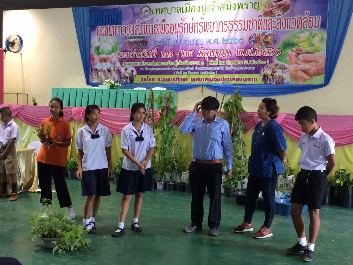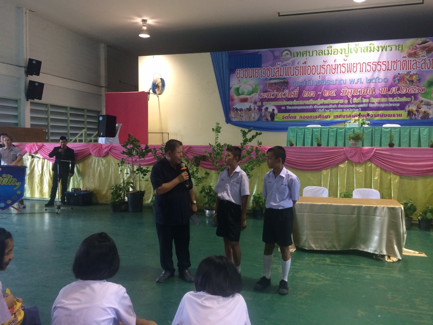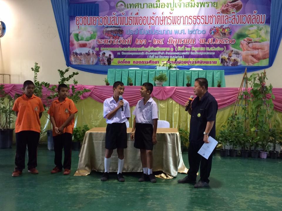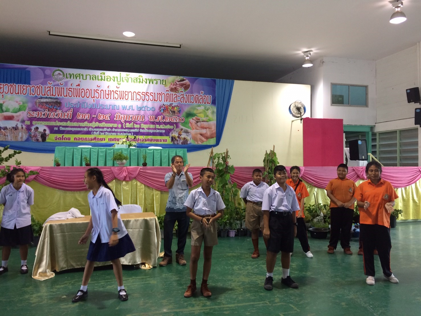 วันที่ ๒๓ มิถุนายน ๒๕๖๐ คุณครูนพดล ศิริจรรยา และคุณครูดวงใจ ผดุงสมัย นำนักเรียนชั้นมัธยมศึกษาปีที่ ๑ จำนวน ๕๐ คน เข้าร่วมโครงการยุวชนเยาวชนสัมพันธ์เพื่ออนุรักษ์ทรัพยากรธรรมชาติและสิ่งแวดล้อม ณ อาคารอเนกประสงค์เทศบาลเมืองปู่เจ้าสมิงพราย (จัดโดยฝ่ายกองการศึกษาเทศบาลเมืองปู่เจ้าสมิงพราย)