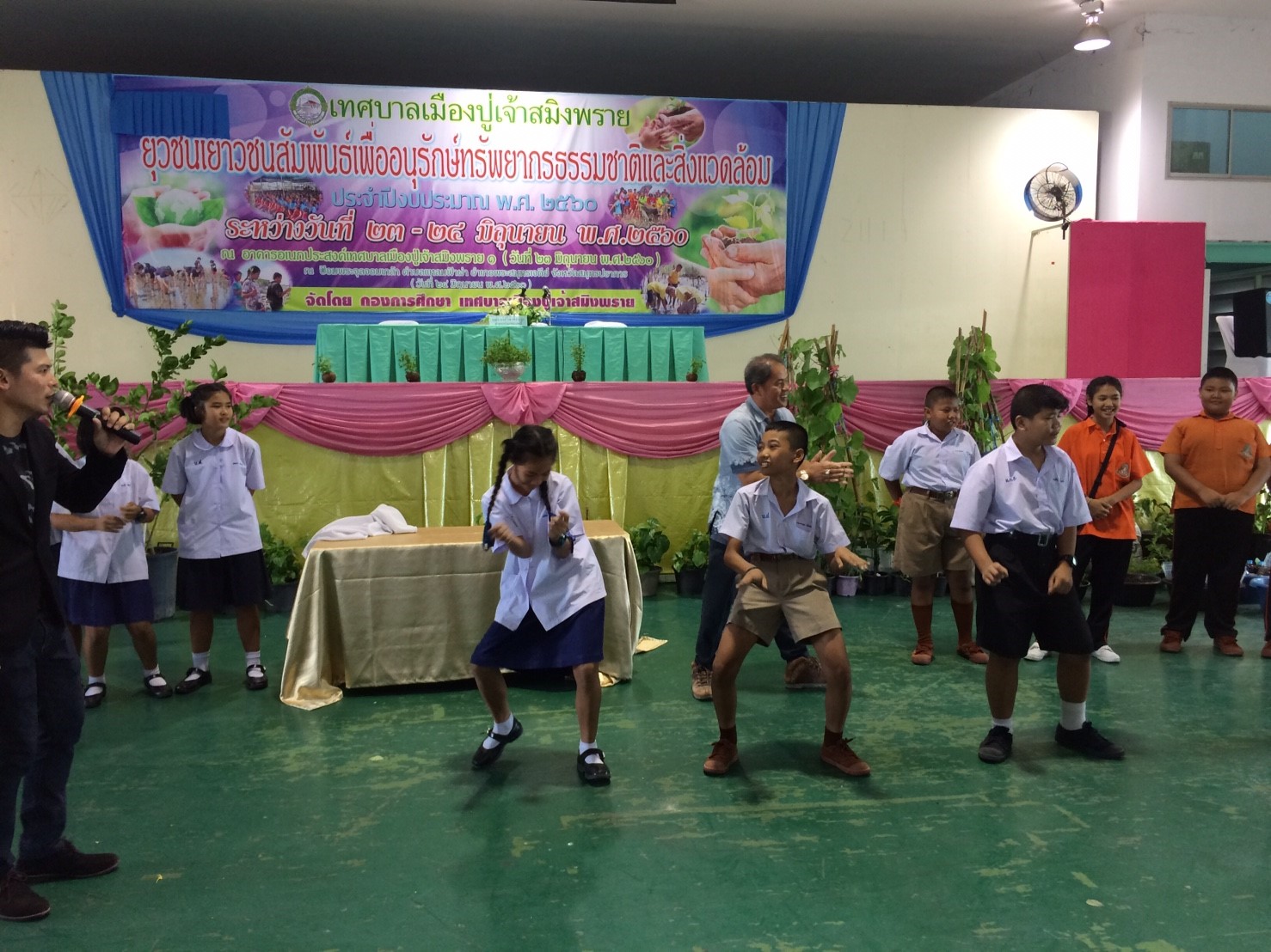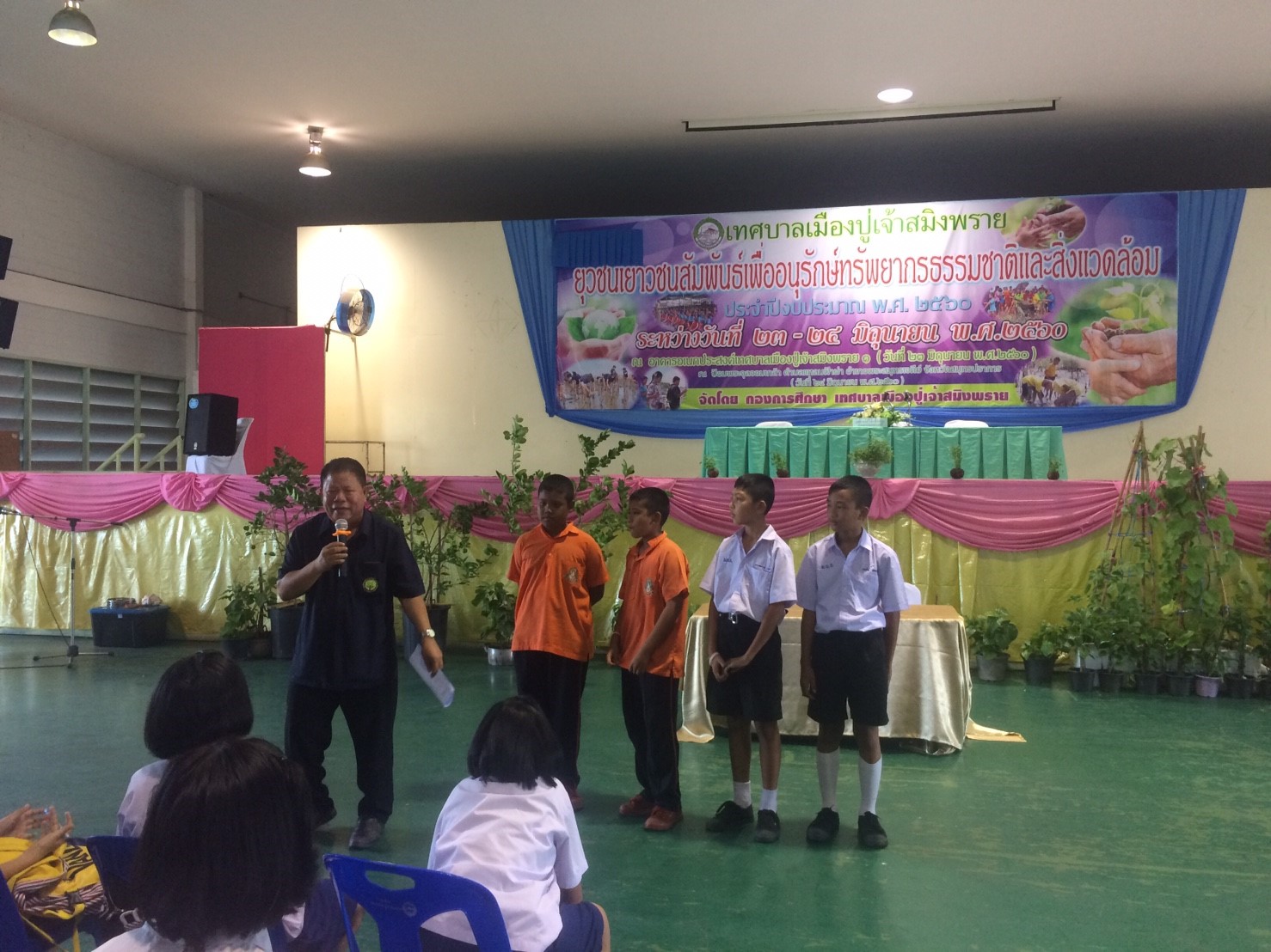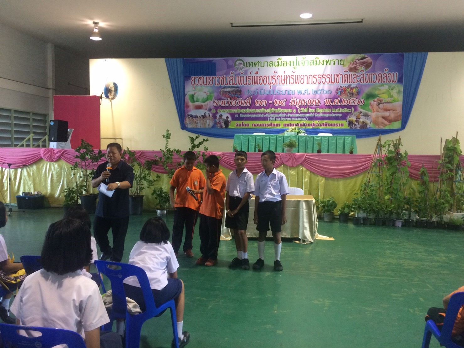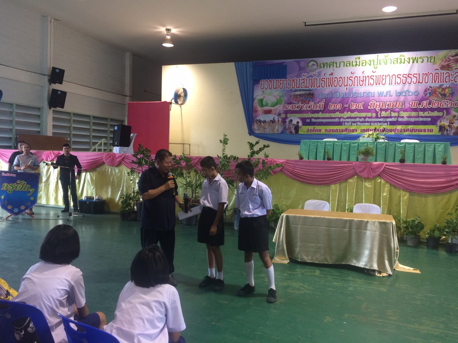วันที่ ๒๓ มิถุนายน ๒๕๖๐ คุณครูนพดล ศิริจรรยา และคุณครูดวงใจ ผดุงสมัย นำนักเรียนชั้นมัธยมศึกษาปีที่ ๑ จำนวน ๕๐ คน เข้าร่วมโครงการยุวชนเยาวชนสัมพันธ์เพื่ออนุรักษ์ทรัพยากรธรรมชาติและสิ่งแวดล้อม ณ อาคารอเนกประสงค์เทศบาลเมืองปู่เจ้าสมิงพราย (จัดโดยฝ่ายกองการศึกษาเทศบาลเมืองปู่เจ้าสมิงพราย)