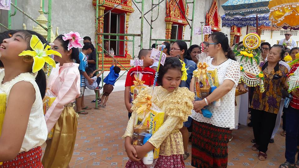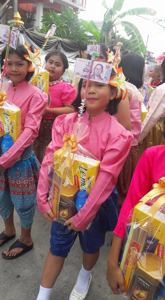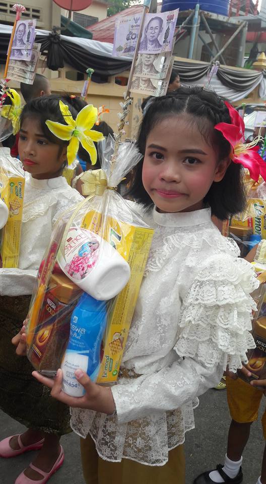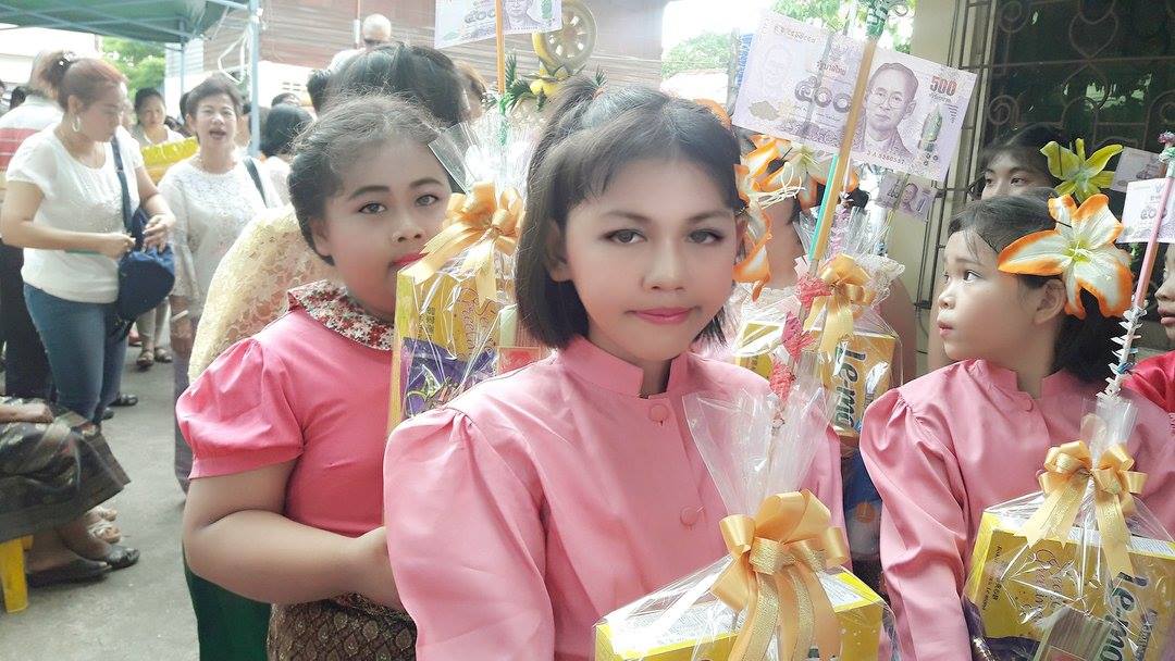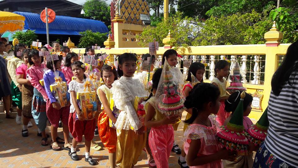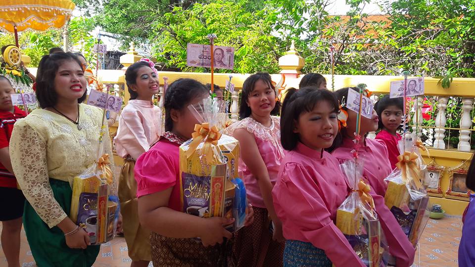 วันที่ ๒๕ มิถุนายน ๒๕๖๐ คุณครูสมศรี คล้ายภู่ คุณครูสุรางคนา และคุณครูสุจิตรา นำนักเรียนในชุมนุมนาฏศิลป์ ระดับประถมศึกษาปีที่ ๔-๖ จำนวน ๒๘ คน เข้าร่วมงานบวชของคนในชุมชนบางวัว (โยธินประดิษฐ์) ตามโครงการสานสัมพันธ์ บ้าน วัด ชุมชน