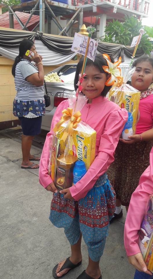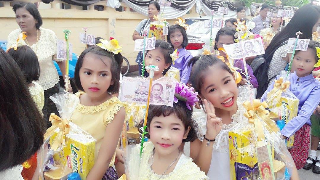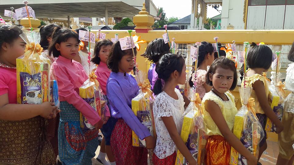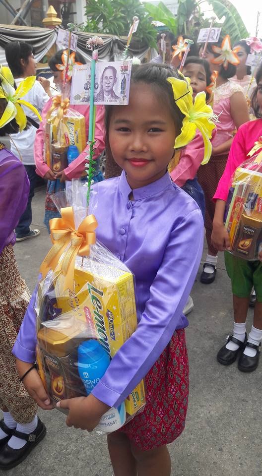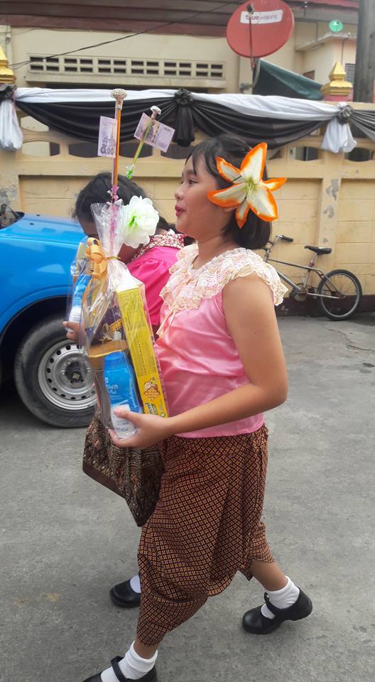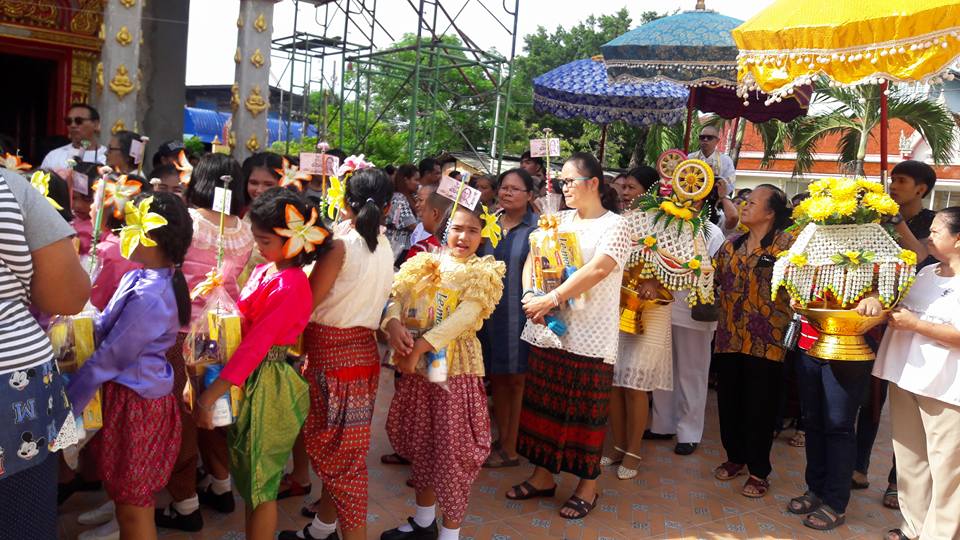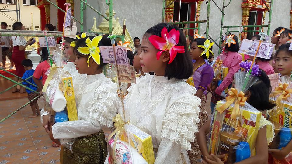 วันที่ ๒๕ มิถุนายน ๒๕๖๐ คุณครูสมศรี คล้ายภู่ คุณครูสุรางคนา และคุณครูสุจิตรา นำนักเรียนในชุมนุมนาฏศิลป์ ระดับประถมศึกษาปีที่ ๔-๖ จำนวน ๒๘ คน เข้าร่วมงานบวชของคนในชุมชนบางวัว (โยธินประดิษฐ์) ตามโครงการสานสัมพันธ์ บ้าน วัด ชุมชน