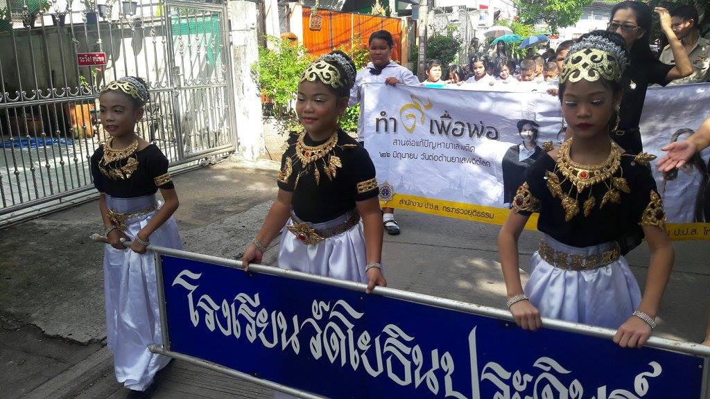 วันที่ ๒๖ มิถุนายน ๒๕๖๐ ผู้บริหาร คณะครูและนักเรียนโรงเรียนวัดโญธินประดิษฐ์ ร่วมเดินรณรงค์เนื่องในวันต่อต้านยาเสพติดโลก