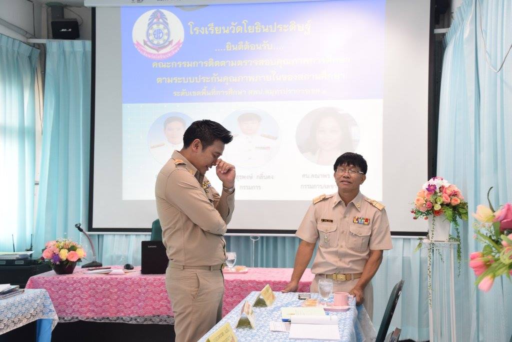 ๑๗ กรกฎาคม ๒๕๖๐ :โรงเรียนวัดโยธินประดิษฐ์รับการประเมินจากคณะกรรมการติดตามตรวจสอบการประกันคุณภาพภายในจากสพป.สป.เขต ๑ โดยมี ผอ.ธวัช ผอ.สุรพงษ์ และศน.คณาพร เป็นคณะกรรมการประเมินในครั้งนี้ #ผลการประเมิน ดีเยี่ยมทั้ง ๘ องค์ประกอบ