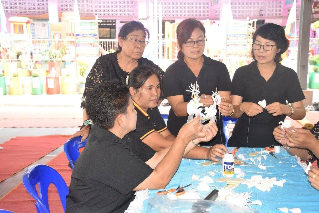 ผู้บริหาร คณะครู นักเรียนและชุมชน ร่วมกันทำดอกดารารัตน์ : ทางโรงเรียนวัดโยธินประดิษฐ์ได้บูรณาการ กิจกรรมลดเวลาเรียนเพิ่มเวลารู้และการทำจิตอาสาประดิษฐ์ดอกไม้จันทน์พระราชทาน” เพื่อทูลเกล้าทูลกระหม่อมถวายในพระราชพิธีถวายพระเพลิงพระบรมศพ พระบาทสมเด็จพระปรมินทรมหาภูมิพลอดุลยเดชบรมนาถบพิตร