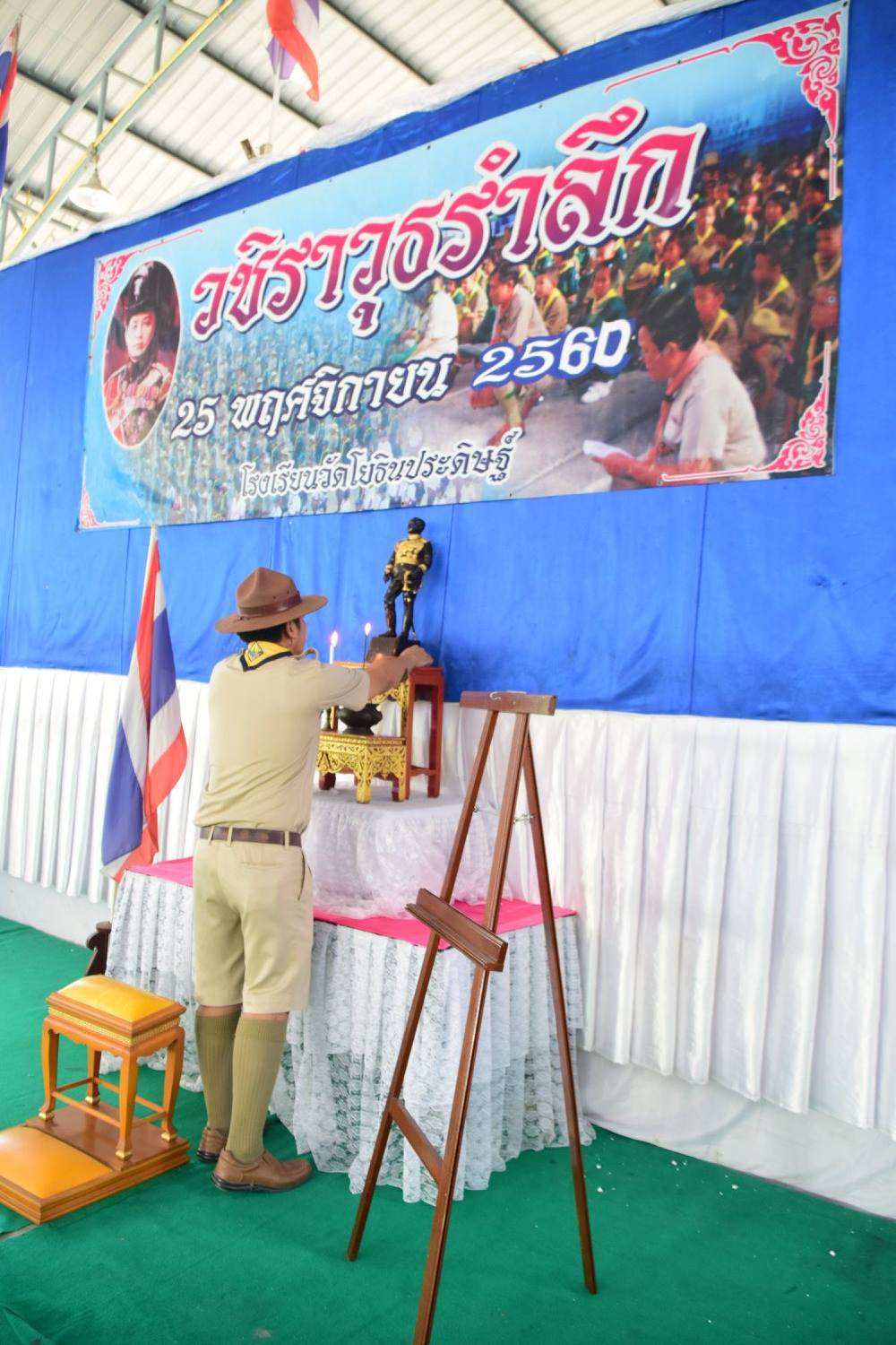 วันศุกร์ที่ 24 พฤศจิกายน 2560 โรงเรียนวัดโยธินประดิษฐ์ จัดกิจกรรมวันวชิราวุธของลูกเสือไทย (ถวายราชสดุดี) เนื่องด้วย วันที่ 25 พฤศิจกายน ของทุกปี เป็นวันคล้ายวันสวรรคต ของพระบาทสมเด็จพระมงกุฎเกล้าเจ้าอยู่หัว รัชกาลที่ 6 เพื่อน้อมรำลึกถึงวันคล้ายวันสวรรคตของพระบาทสมเด็จพระปรเมนทรมหาวชิราวุธ พระมงกุฎเกล้าเจ้าอยู่หัว ซึ่งพระองค์ได้พระราชทานกำเนิดลูกเสือไทยขึ้น โดย นายจิระพงศ์ ศุภศรี ผู้อำนวยการโรงเรียนวัดโยธินประดิษฐ์ เป็นประธานในพิธี ร่วมด้วยผู้กำกับลูกเสือและลูกเสือสามัญสำรอง ลูกเสือสามัญ ลูกเสือสามัญรุ่นใหญ่ ทุกนายร่วมพิธีอย่างพร้อมเพียงกัน