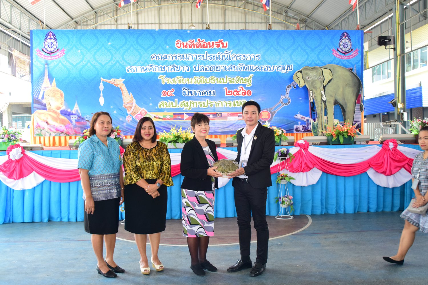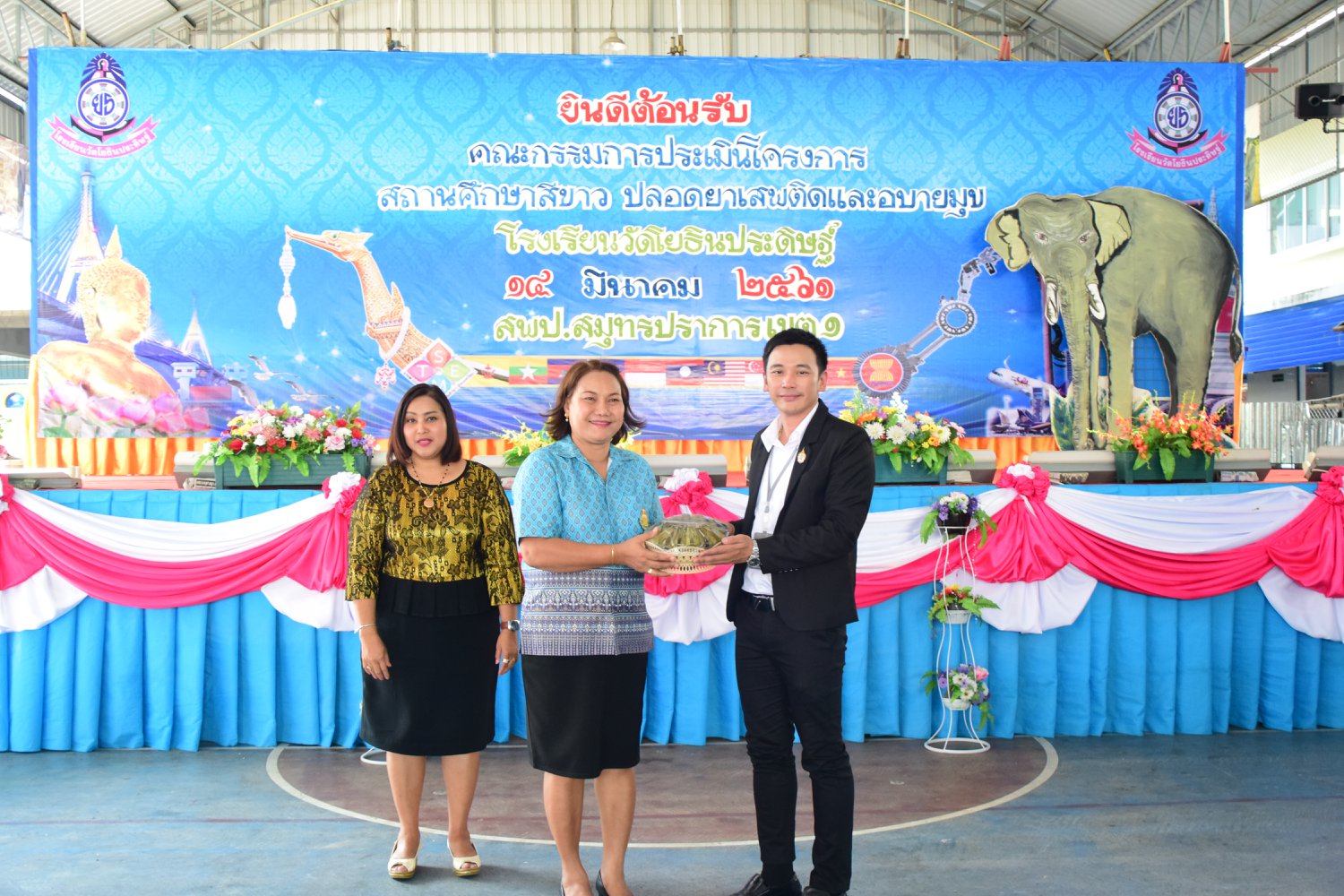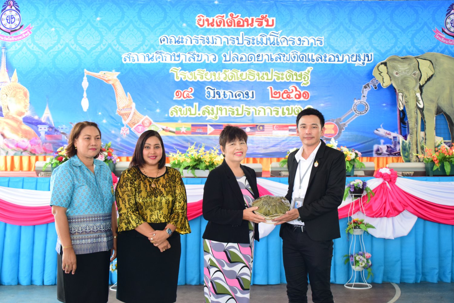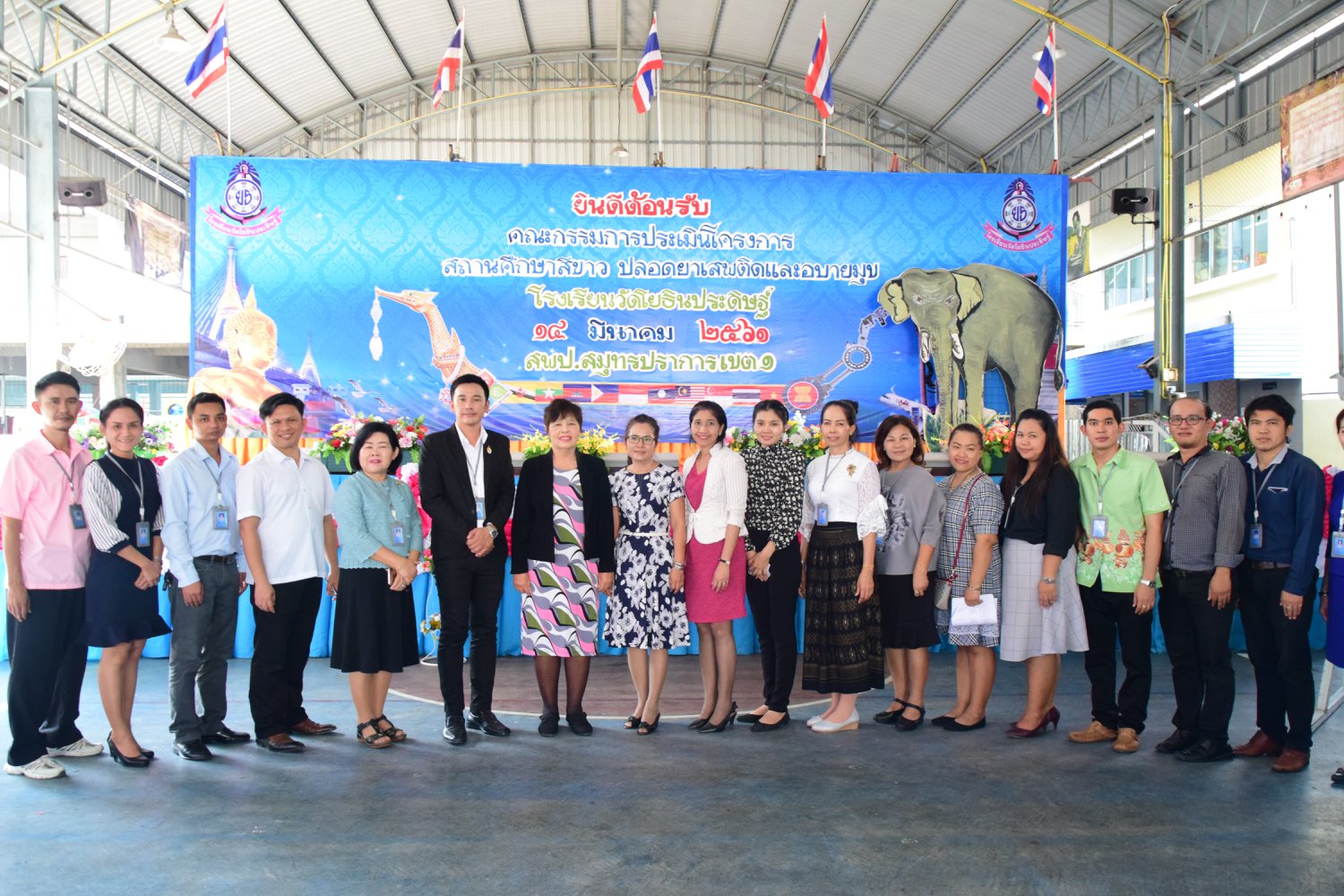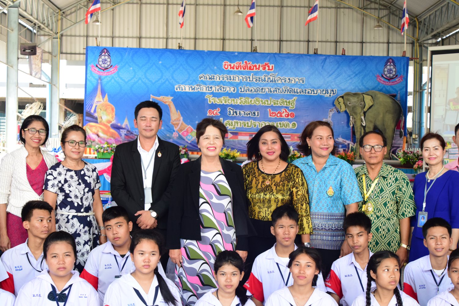 เมื่อพุธที่ 14 มีนาคม 2561 นำโดย นายจิระพงศ์ ศุภศรี ผู้อำนวยการโรงเรียนวัดโยธินประดิษฐ์ พร้อมคณะครู ผู้ปกครอง ชุมชน และภาคีเครือข่ายตลอดจนนักเรียนแกนนำ โรงเรียนวัดโยธินประดิษฐ์ ได้เข้าร่วมทำกิจกรรมนำเสนอผลงาน เพื่อรับการตรวจประเมินสถานศึกษาสีขาว ปลอดยาเสพติดและอบายมุข ประจำปีการศึกษา 2560 จากคณะกรรมการตรวจประเมิน