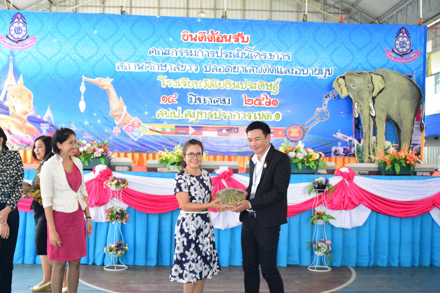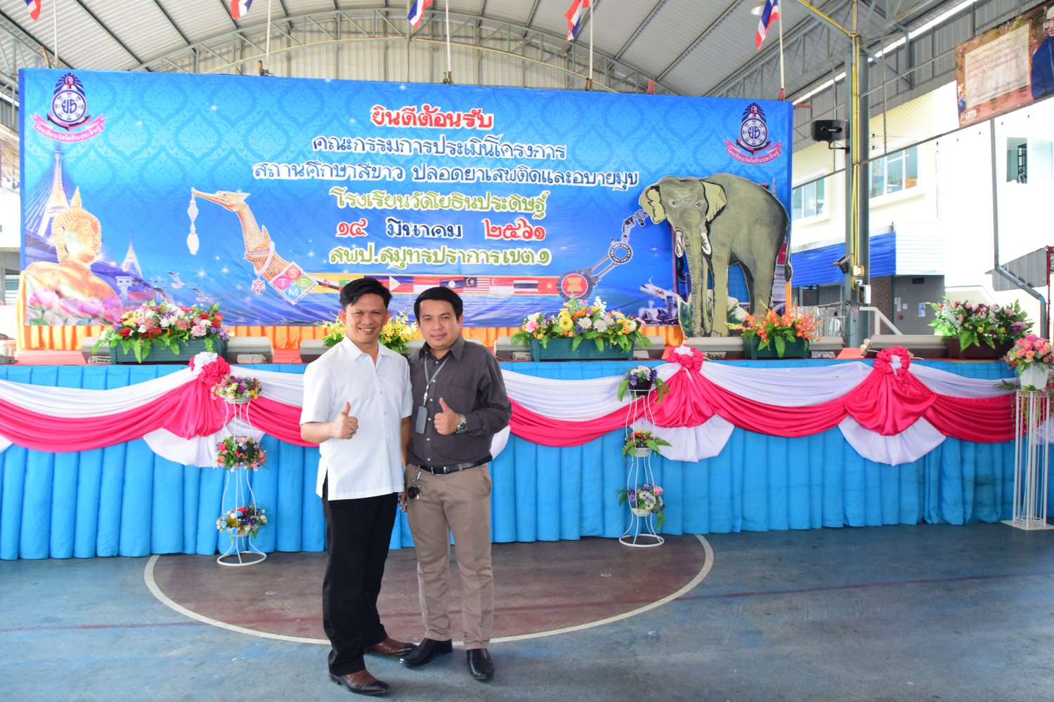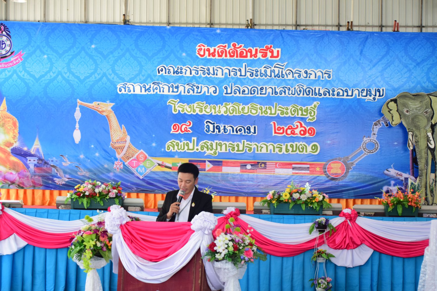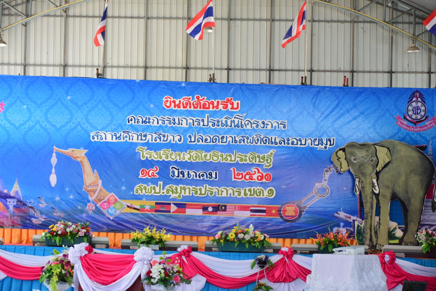 เมื่อพุธที่ 14 มีนาคม 2561 นำโดย นายจิระพงศ์ ศุภศรี ผู้อำนวยการโรงเรียนวัดโยธินประดิษฐ์ พร้อมคณะครู ผู้ปกครอง ชุมชน และภาคีเครือข่ายตลอดจนนักเรียนแกนนำ โรงเรียนวัดโยธินประดิษฐ์ ได้เข้าร่วมทำกิจกรรมนำเสนอผลงาน เพื่อรับการตรวจประเมินสถานศึกษาสีขาว ปลอดยาเสพติดและอบายมุข ประจำปีการศึกษา 2560 จากคณะกรรมการตรวจประเมิน