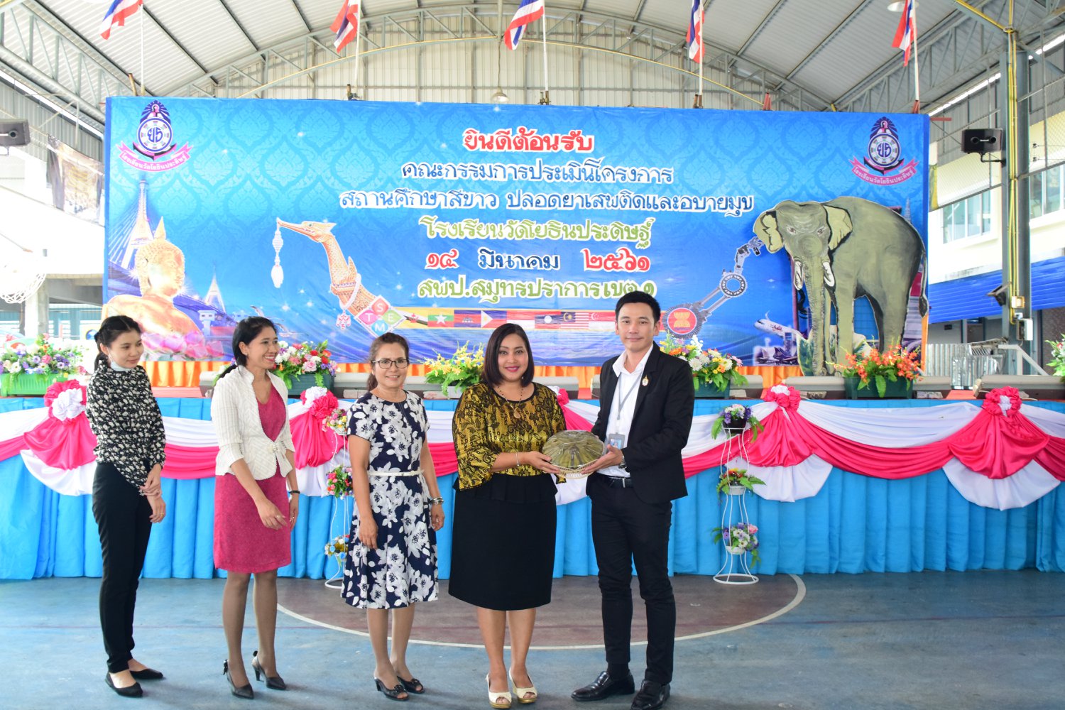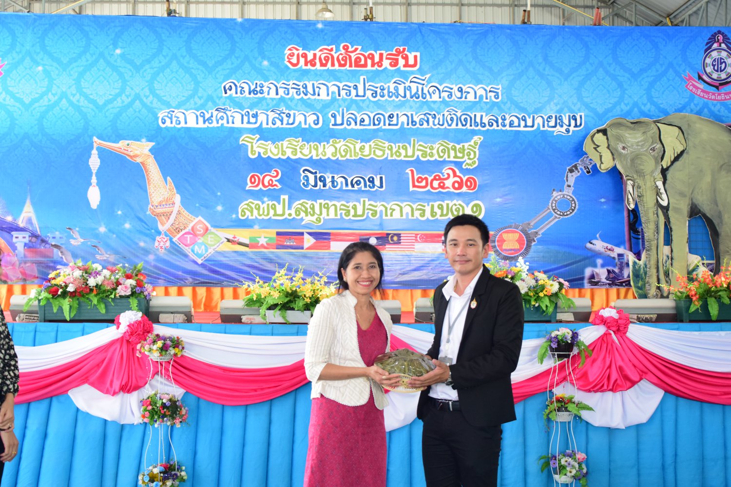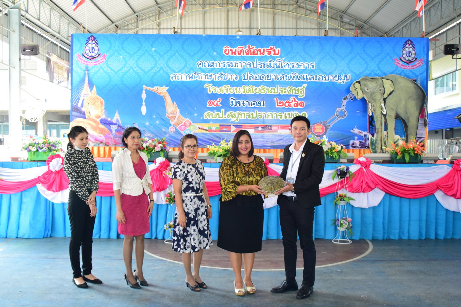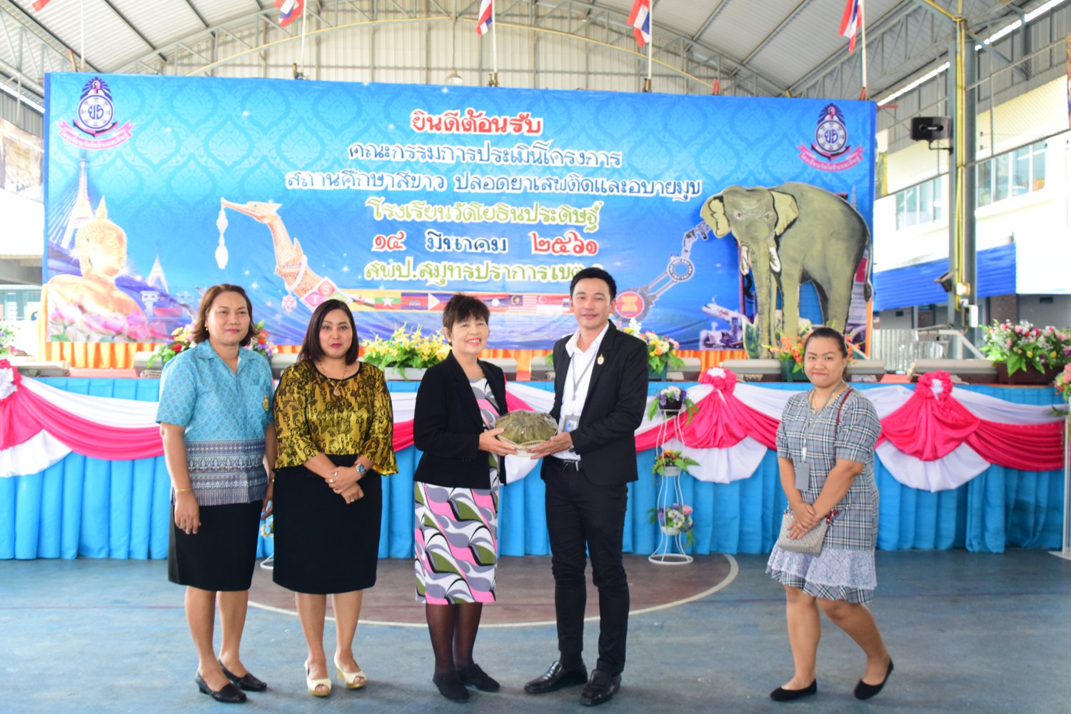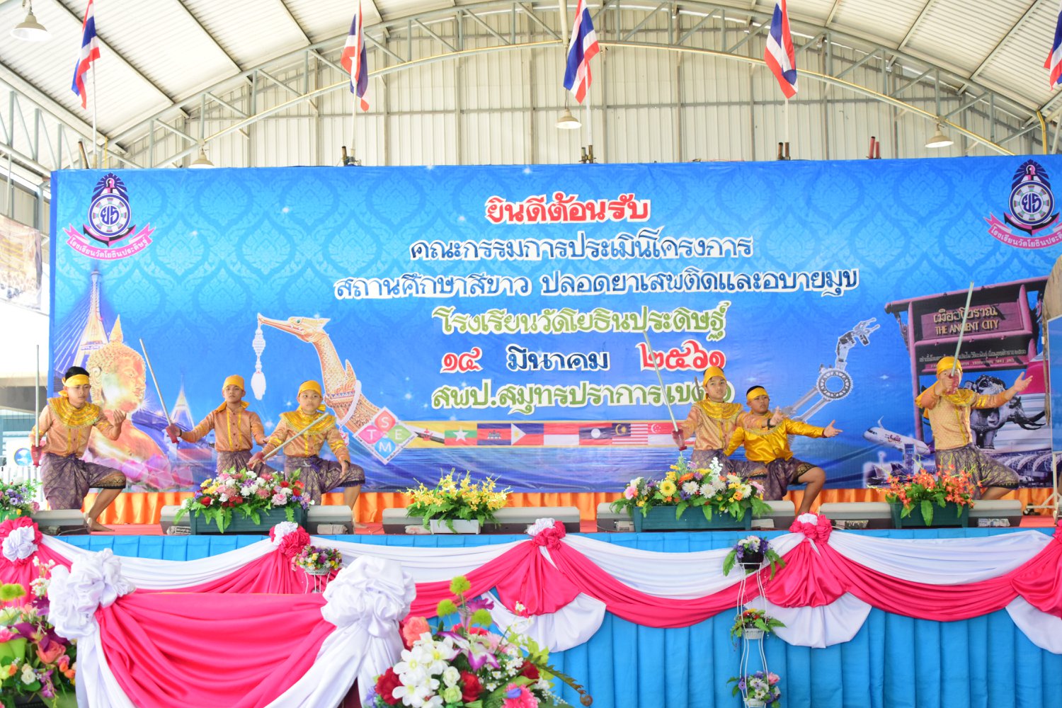 เมื่อพุธที่ 14 มีนาคม 2561 นำโดย นายจิระพงศ์ ศุภศรี ผู้อำนวยการโรงเรียนวัดโยธินประดิษฐ์ พร้อมคณะครู ผู้ปกครอง ชุมชน และภาคีเครือข่ายตลอดจนนักเรียนแกนนำ โรงเรียนวัดโยธินประดิษฐ์ ได้เข้าร่วมทำกิจกรรมนำเสนอผลงาน เพื่อรับการตรวจประเมินสถานศึกษาสีขาว ปลอดยาเสพติดและอบายมุข ประจำปีการศึกษา 2560 จากคณะกรรมการตรวจประเมิน