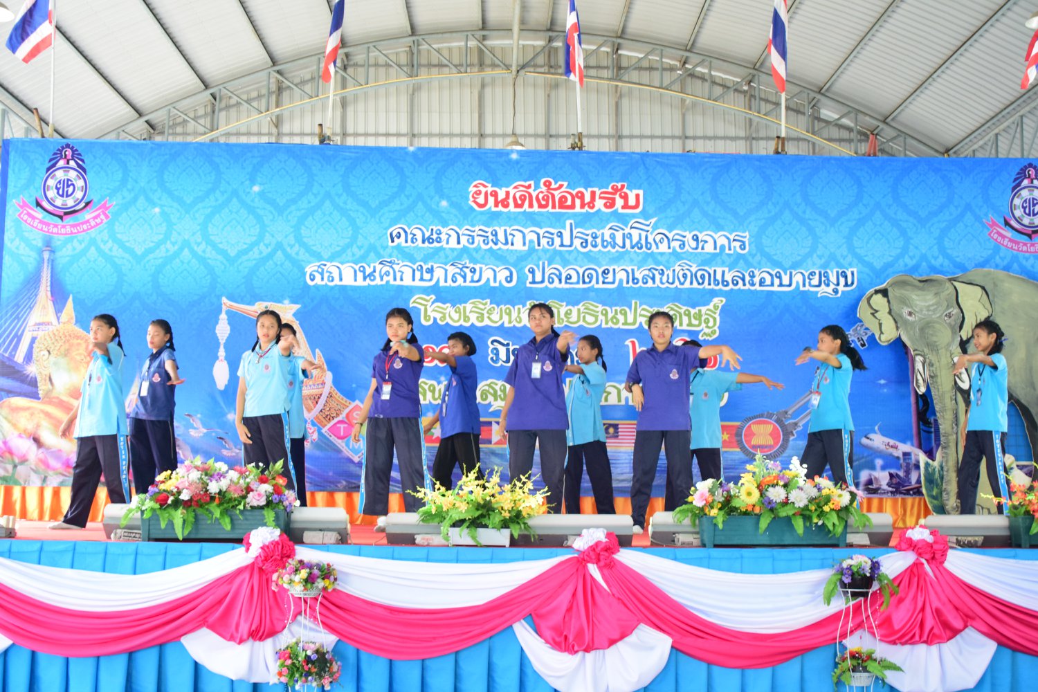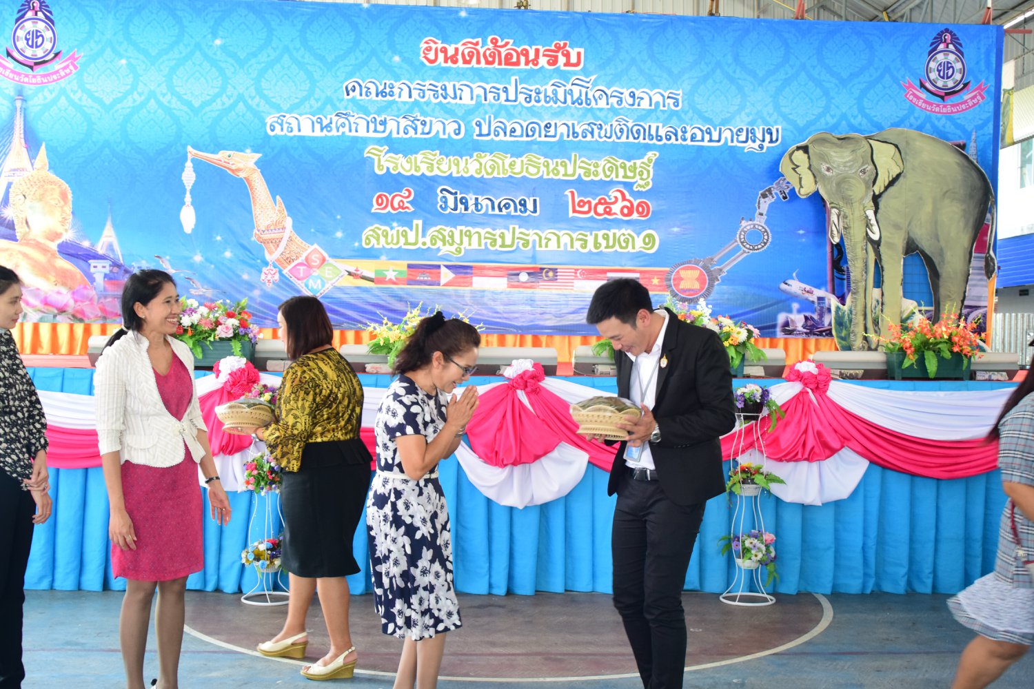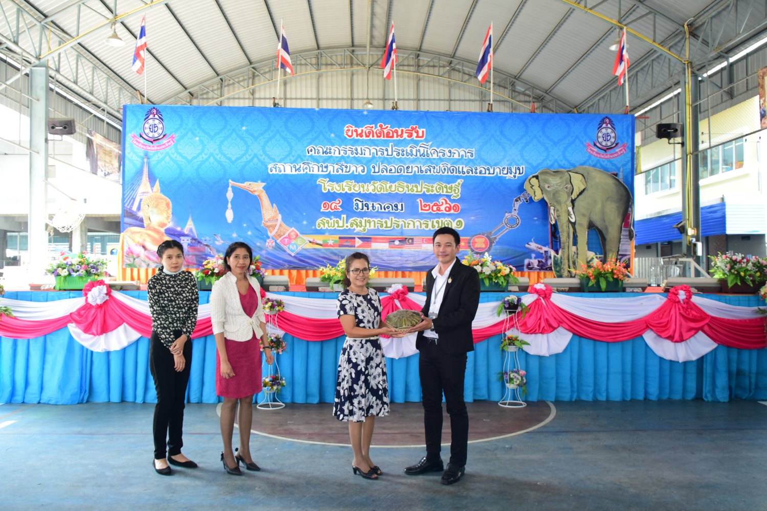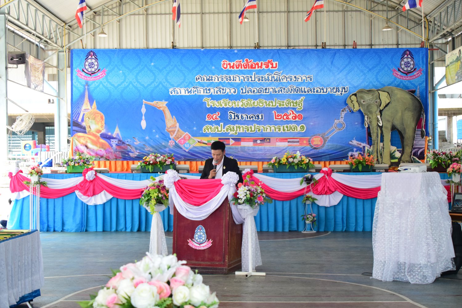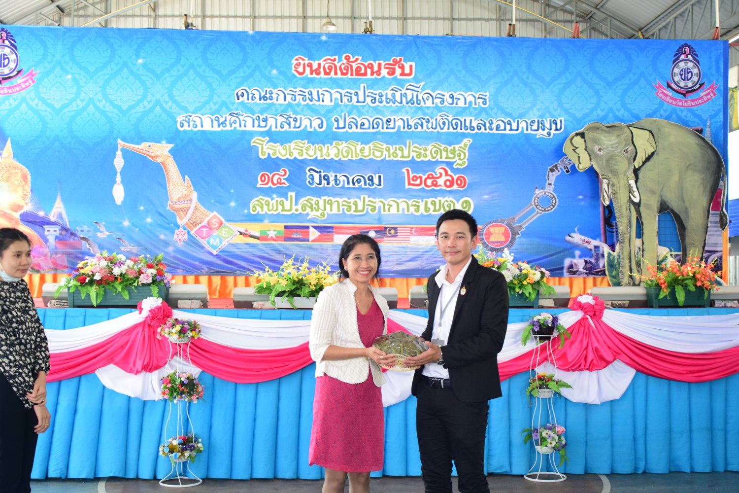 เมื่อพุธที่ 14 มีนาคม 2561 นำโดย นายจิระพงศ์ ศุภศรี ผู้อำนวยการโรงเรียนวัดโยธินประดิษฐ์ พร้อมคณะครู ผู้ปกครอง ชุมชน และภาคีเครือข่ายตลอดจนนักเรียนแกนนำ โรงเรียนวัดโยธินประดิษฐ์ ได้เข้าร่วมทำกิจกรรมนำเสนอผลงาน เพื่อรับการตรวจประเมินสถานศึกษาสีขาว ปลอดยาเสพติดและอบายมุข ประจำปีการศึกษา 2560 จากคณะกรรมการตรวจประเมิน