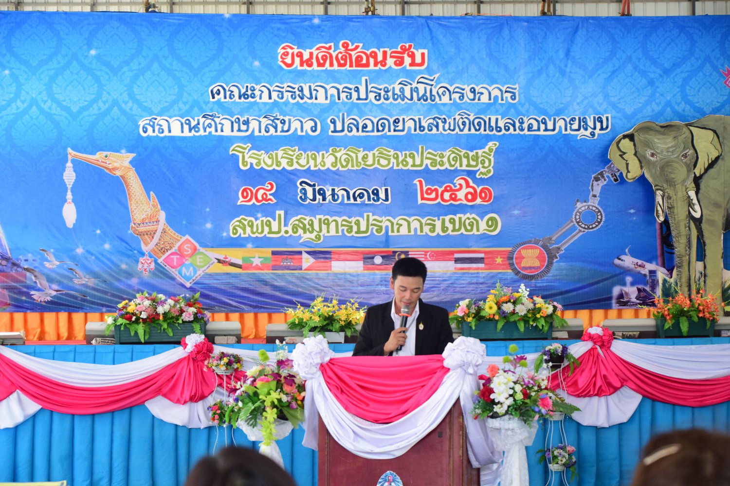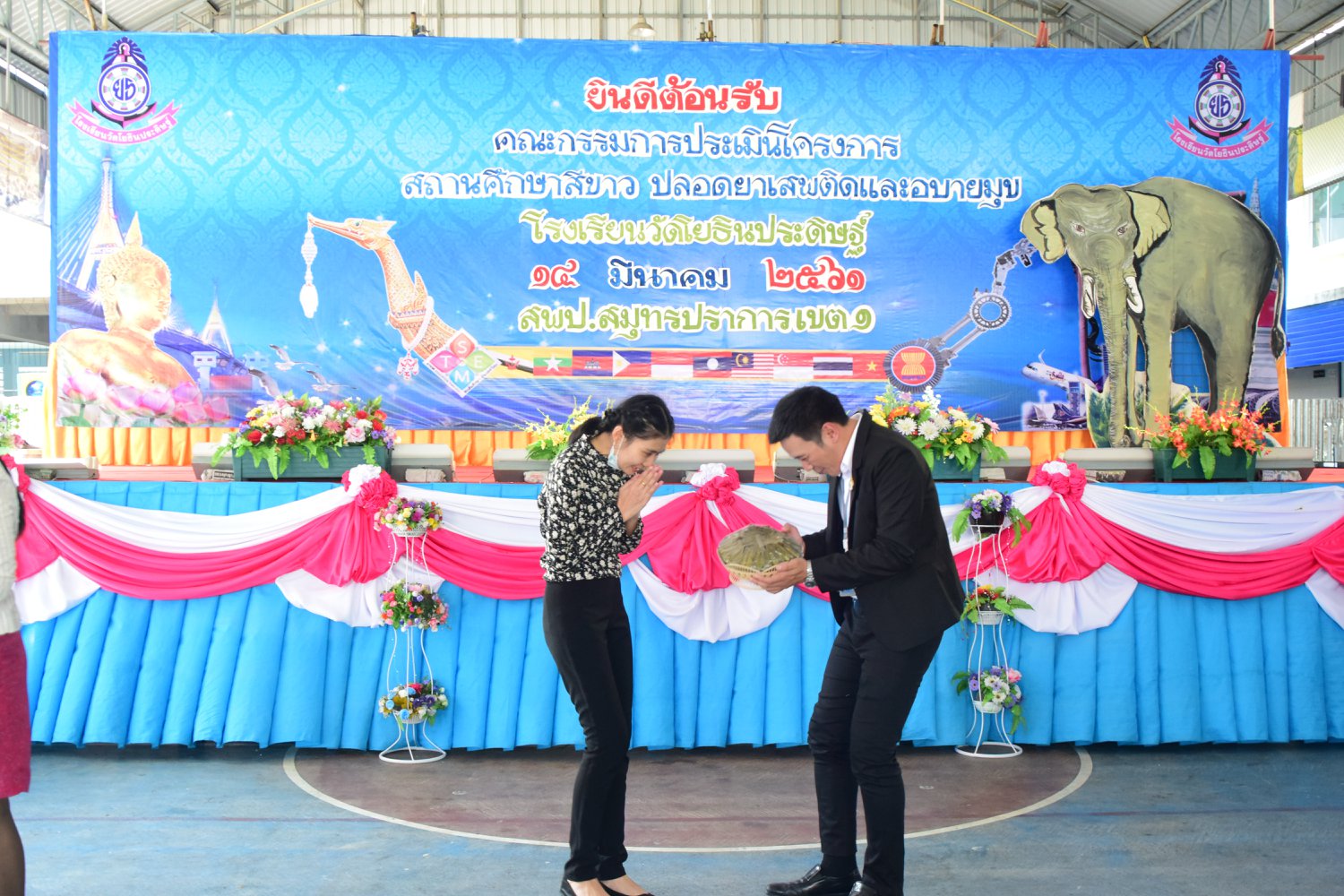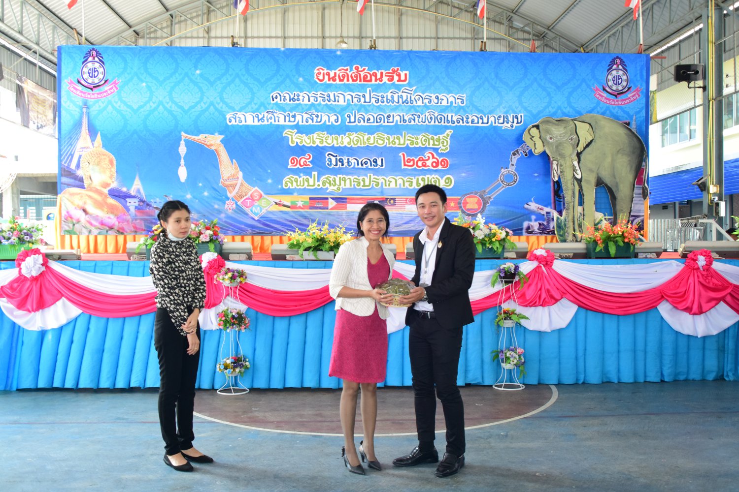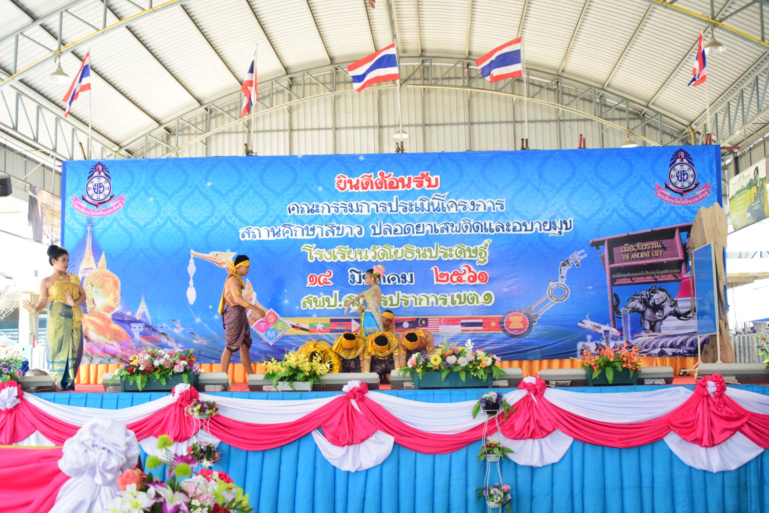 เมื่อพุธที่ 14 มีนาคม 2561 นำโดย นายจิระพงศ์ ศุภศรี ผู้อำนวยการโรงเรียนวัดโยธินประดิษฐ์ พร้อมคณะครู ผู้ปกครอง ชุมชน และภาคีเครือข่ายตลอดจนนักเรียนแกนนำ โรงเรียนวัดโยธินประดิษฐ์ ได้เข้าร่วมทำกิจกรรมนำเสนอผลงาน เพื่อรับการตรวจประเมินสถานศึกษาสีขาว ปลอดยาเสพติดและอบายมุข ประจำปีการศึกษา 2560 จากคณะกรรมการตรวจประเมิน