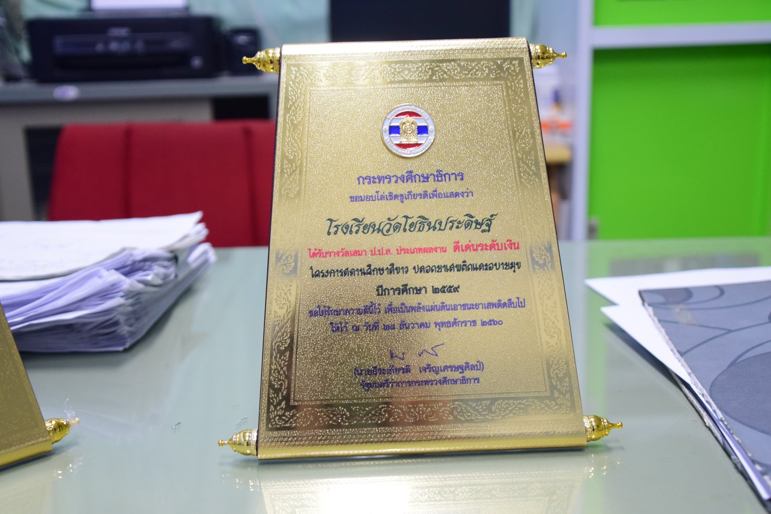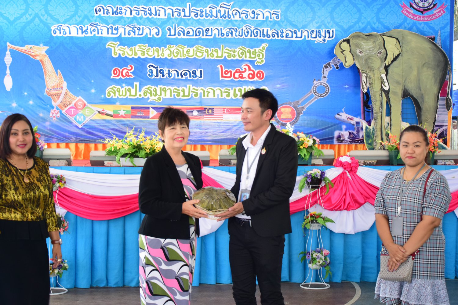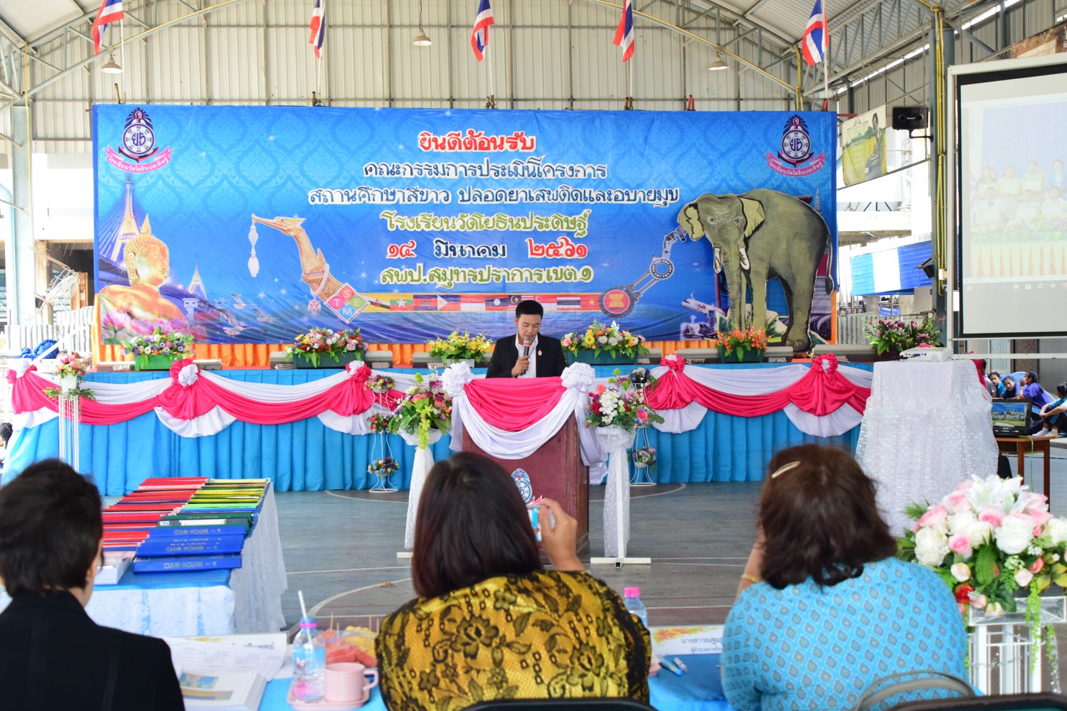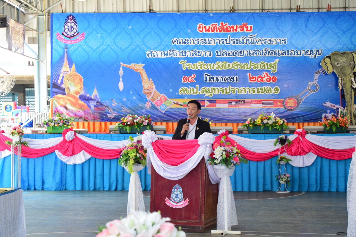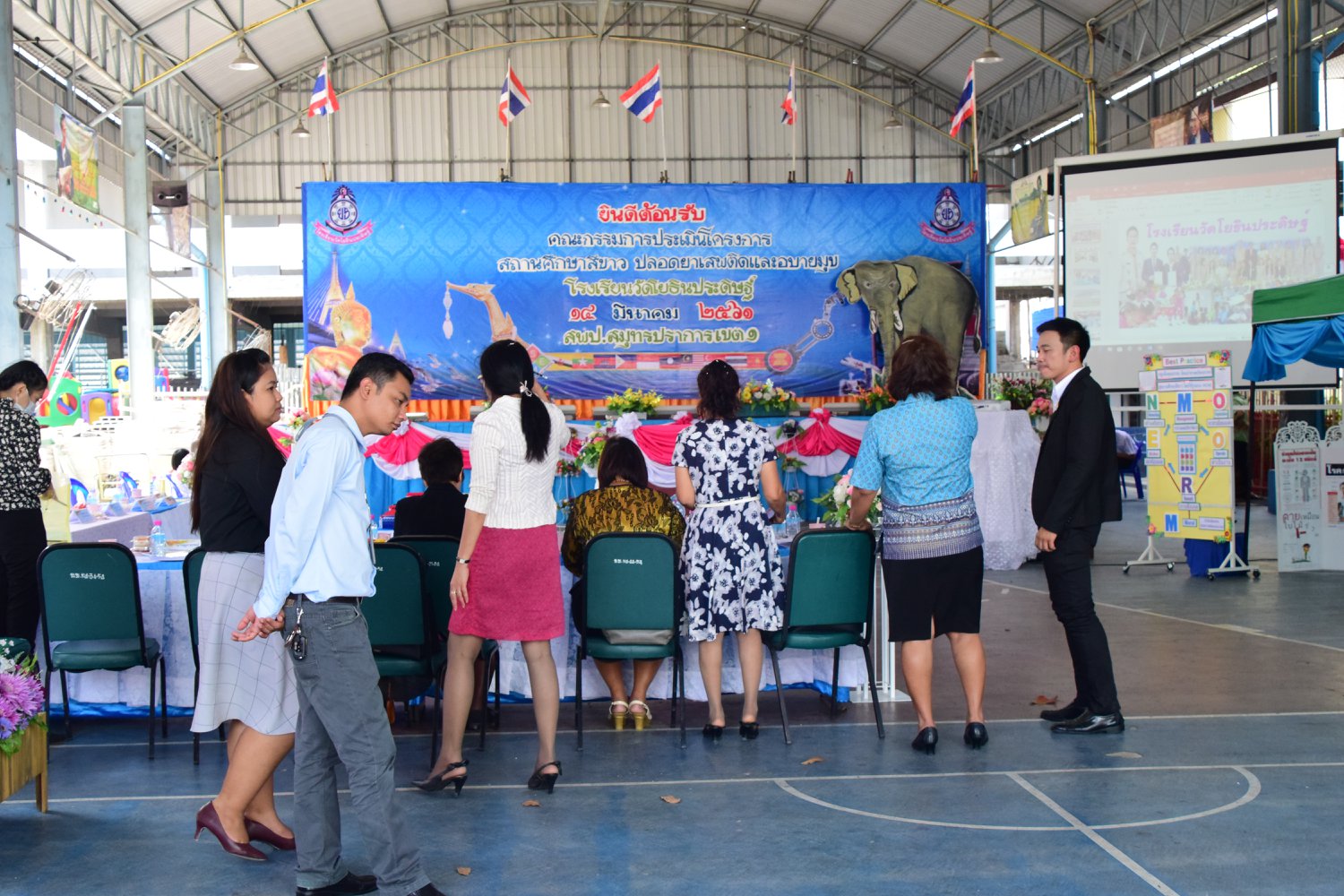 เมื่อพุธที่ 14 มีนาคม 2561 นำโดย นายจิระพงศ์ ศุภศรี ผู้อำนวยการโรงเรียนวัดโยธินประดิษฐ์ พร้อมคณะครู ผู้ปกครอง ชุมชน และภาคีเครือข่ายตลอดจนนักเรียนแกนนำ โรงเรียนวัดโยธินประดิษฐ์ ได้เข้าร่วมทำกิจกรรมนำเสนอผลงาน เพื่อรับการตรวจประเมินสถานศึกษาสีขาว ปลอดยาเสพติดและอบายมุข ประจำปีการศึกษา 2560 จากคณะกรรมการตรวจประเมิน